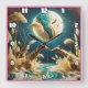 Reloj Cuadrado jirafas en un río iluminado por la luna