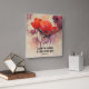 Hermoso reloj de pared cristiano con escritura de cita inspiradora representa un diseño de arte floral de acuarela simple y elegante con dos flores rojas y un fondo púrpura abstracto. Presenta una Biblia motivadora Verse Juan 15:12, en las palabras de Jesús, "Amaos unos a otros como os he amado".