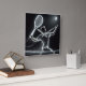Jugador de tenis dinámico brillante con efectos de neón en negro