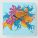 Pescado de Koi con flores de loto y flores de cerezo por todas partes en el agua dibujado en un estilo de tatuaje.