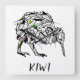 Si desea personalizar este diseño, utilice el botón de preguntar a este diseñador, que está justo debajo de este texto. Y ilustracion blanco y negro de un kiwi. Este Kiwi está dibujado con formas geométricas y patrones en sus alas.