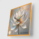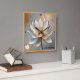 Una flor de loto estilizada con acentos dorados, sus pétalos se despliegan en líneas limpias y elegantes. Este diseño simboliza la pureza, la iluminación y el renacimiento, ambientados en un fondo suave y texturado para un ambiente sereno y transformador. "Imagen original generada por Meta AI. La IA generó obras de arte. Con licencia CC BY-SA 4.0."