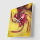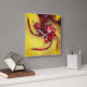 fractal rojo que adquirió una forma que recuerda a algunos lagartos, rana delgada o reptiles sobre una textura de arena amarillo ocre.