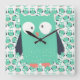 Reloj Cuadrado Lechuzas singulares verde azuladas