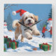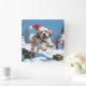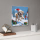 Reloj Cuadrado Lhasa Apso postulando en Nieve con Gorra Navidad