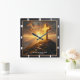 This powerful and majestic design captures the theme of the Light of Salvation—the divine path and promise of eternal guidance through Christ. The artwork, featured on a square wall clock, displays an ornate, luminous stone cross with gold accents, standing monumentally on a rocky mountain summit. A clear stone pathway or stairway ascends the mountain directly toward the cross, rising above a base of low-lying fog. The cross is bathed in intense golden light and dramatic sunrays that pierce the sky, symbolizing the light of the world. The core message of Christian faith is quoted from John 8:12: "I am the light of the world." This incredible image provides a spectacular visual representation of faith, serving as an inspiring timepiece and striking centerpiece for any faithful home or office.
