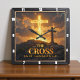 This powerful and symbolic design captures the theme of the Light of Salvation—the central and enduring hope offered through Christ. The artwork, featured on a square wall clock, displays two crosses standing dramatically on a rocky mountain summit: one a brilliantly glowing, luminous cross and the other a rugged stone cross. The intense golden light of the sunburst from behind the glowing cross illuminates the entire scene, symbolizing the light conquering darkness. The gold words "THE CROSS" are prominently featured near the base of the design. The core message of Christian faith is quoted from John 8:12: "I am the light of the world." This incredible image provides a spectacular visual representation of faith, serving as an inspiring timepiece and striking centerpiece for any faithful home.