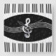 Llaves del piano y clef agudo curvados en los fondos negros y gris oscuro de la nota musical, gran regalo para cualquier músico. sgb01