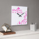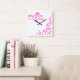 Divertido Lo que sea que soy un Princess Wall Clocks. Blanco y rosa. Corona rosa con números en caída.