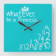 ¿Llego tarde? Como sea, soy una princesa. Divertidos relojes de pared. azul verde azulado y blanco. Se aceptan diseños y colores personalizados. Haga clic en el enlace de contacto de arriba para enviarme un mensaje.