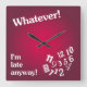 Reloj Cuadrado Lo que - soy atrasado de todos modos - diseño rojo