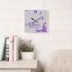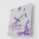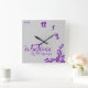 Lo que, yo son atrasados de todos modos. Divertido como un jefe, reloj de pared. Púrpura 660198 con el fondo gris claro.