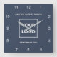 Crea tu propio reloj de pared cuadrado mínimo para tu negocio con tu logotipo y texto en un fondo azul marino con números simples en blanco alrededor del borde. Reemplace el logotipo y el texto de la empresa de ejemplo por el suyo propio en la barra lateral. Su logotipo puede ser un círculo, cuadrado u otra forma. Los logotipos en blanco o en color claro funcionarán mejor con este diseño. Haga clic en el personalizar para ajustar el tamaño de su logotipo con los botones de escala o cambiar el color de fondo. Vea más elementos a los que puede añadir su logotipo en la colección de Artes Rocklawn. Copyright © Claire E. Skinner. Todos Los Derechos Reservados.