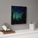 Alces en la silueta en el crepúsculo en un pequeño claro rodeada por los árboles imperecederos