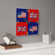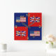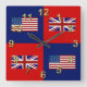 Un diseño de alternancia con la bandera americana y la bandera británica de Union Jack en un fondo rojo y azul.