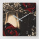 Reloj Cuadrado Luz de linterna rústica y rosas rojas oscuras glam