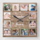 Reloj Cuadrado Madera Cita de Amor Familiar Collage 12 Fotos