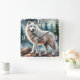 Reloj Cuadrado Majestuoso Lobo Blanco en el bosque de invierno