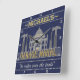 Este diseño divertido y personalizado es perfecto para decorar tu cueva masculina. Dice, "[Tu nombre] Garage Mahal" y muestra un contorno del Taj Mahal con martillos, choferes y un auto pequeño que parece que está estacionado en el medio. Añade fácilmente tu nombre a la parte superior. Los colores son azul, gris y amarillo dorado.