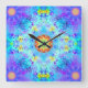 Reloj Cuadrado Mandala del hippy de la estrella azul modelada