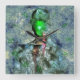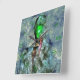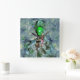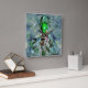 Pintura surrealista. Hombre con traje y gorra de bolos con manzana verde en lugar de su cara