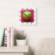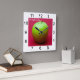 Reloj Cuadrado manzana verde sobre fondo rojo