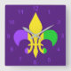 Reloj Cuadrado Mardi Gras Green Yellow Purple Fleur-de-Lis