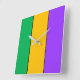 Reloj Cuadrado Mardi Gras Stripes Pattern Púrpura amarillo verde