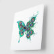 Reloj Cuadrado Mariposa con plumas de pavo real verde