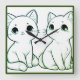 El reloj de pared cuadrado de la hoja de Matcha es un reloj encantador y minimalista. Tiene forma cuadrada con un borde verde que recuerda el color de las hojas de té matcha. La cara del reloj está adornada con un ilustracion de dos gatos adorables y estilizados uno al lado del otro. Un gato está mirando directamente, mientras que el otro parece estar guiñando un ojo o parpadeando, añadiendo un toque juguetón al diseño. Los gatos son blancos con un sutil matiz matcha, y sus grandes ojos expresivos, junto con sus narices matcha, le dan un encanto especial. Las manos del reloj son negras y se colocan a los diez minutos de las diez. La ausencia de números o marcadores de hora en la cara del reloj pone de relieve su diseño minimalista y decorativo. Este reloj sería una deliciosa adición a cualquier habitación, sobre todo para aquellos que aprecian diseños lindos y simplistas y el relajante color de la matcha.