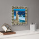 En la foto se ve un Meerkat de guardia en la playa rodeado por un cuadro de un sarkats.