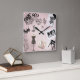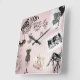 Reloj rosado, blanco y negro elegante y de moda 1920 de la moda del vintage de París. Torre Eiffel, los dummys etc. del sastre.