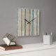 Las rayas inspiradas en el estilo bohemio de moda, coordinadas en colores de tendencia para ese ambiente moderno y fresco. Reloj cuadrado montado en la pared con opciones para cambiar la forma, el estilo y el color de las manos de reloj facial a la medida.