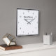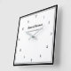 Un moderno reloj cuadrado simple y negro con números. Personalice agregando el nombre de su empresa y sitio web. Elija un color que se adapte a sus necesidades personales.