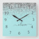 Aqua Blue - Reloj de nombres de monograma del Purpurina de guion Verde azulado y plateado. Esto hace que el dulce perfecto cumpleaños 16, boda, ducha de novia, aniversario, ducha de bebé o fiesta de soltera sea regalo para alguien que ama el lujo glam y los estilos de moda.