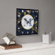 Un reloj con un elegante fondo de mármol azul marino y dorado. En la parte superior hay un círculo con un borde de Relieve metalizado de oro falso con una letra monograma personalizada en el interior.