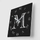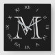 Reloj Cuadrado Monograma Números romanos Blancos en la WCcn Negra