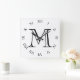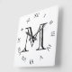 Reloj Cuadrado Monograma Números romanos negros en el wccn blanco