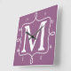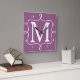 Reloj de pared de moda Morado Monograma. Marco de doodle blanco inmaculado y monograma inicial sobre reloj de pared púrpura brillante. También disponible en otros colores.