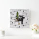 Reloj Cuadrado Moose rústico de silueta y árboles en Birch