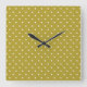 Reloj Cuadrado Mustard yellow white polka dots pattern