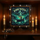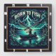 Se trata de un ilustracion audaz y dinámico con un tema de pesca central. El diseño cuenta con una persona en un pequeño barco en un lago por la noche, rodeado por una impresionante exposición de rayos eléctricos. La frase "NACIDO A PESCADO" está escrita en un elegante cartel en la parte superior. El conjunto está enmarcado por peces y follaje brillantes y decorativos, lo que le da a la obra un ambiente potente y enérgico.