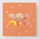 Reloj Cuadrado Naranja arco iris lindo arte retro