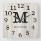 Reloj Cuadrado Natural Wood Large Numbers Family Name Monogram