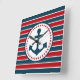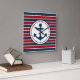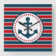 Nautical design with anchor decoration in round shape with stars on red, blue and white striped background