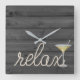 Reloj Cuadrado nautical rope on wood with martini and relax text