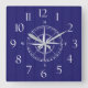 Reloj Cuadrado Nautical Ship Compass Naval Azul Madera Blanca