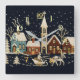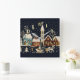 Reloj Cuadrado Navidades de bordado en aldea nevada azul