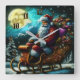 Reloj Cuadrado Navidades de dibujo de Pastel duro Santa en Sleigh