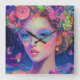 Un impresionante retrato surrealista de fantasía de una mujer radiante adornada con brillantes gafas pastel y una corona de flores de neón y fruta. Enfrentada a un paisaje floral cósmico con mariposas flotantes, esta obra de arte digital rebosa de color, magia y energía femenina.